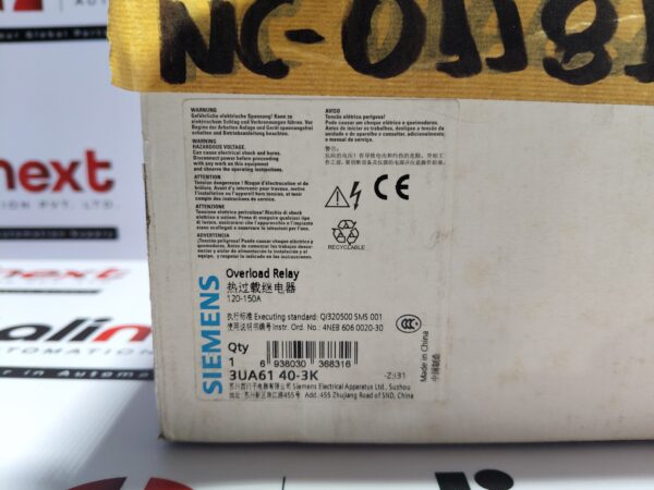 If you are looking to buy Siemens Overload Relay 3UA61 40 3K online, choosing an original unit ensures safety and long-term reliability. The Siemens Overload Relay 3UA61 40 3K online is suitable for both new installations and replacement needs. Whether you want to order Siemens Overload Relay 3UA61 40 3K for motor protection applications or buy Siemens Overload Relay 3UA61 40 3K online, it delivers trusted Siemens quality, accurate protection, and dependable operation.